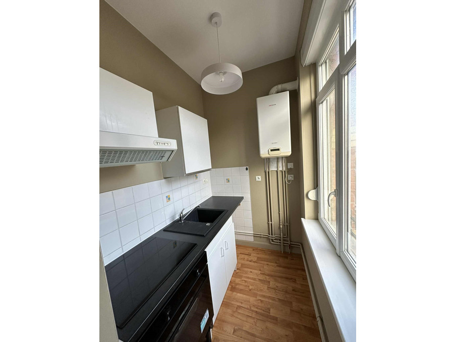 Appartement trÃ?¨s lumineux situÃ?© entre la gare et la place offrant un hall d'entrÃ?©e, un salon, une cuisine Ã?©quipÃ?©e ( plaque, four, frigo, hotte), deux chambres, une salle de douche, un wc sÃ?©parÃ?©. Chauffage au gaz de ville. DISPONIBLE DE SUITE . Contact direct : 06x76x94x12x75